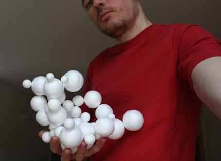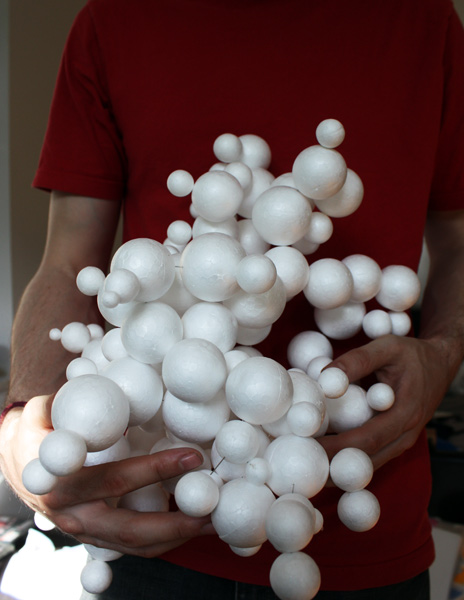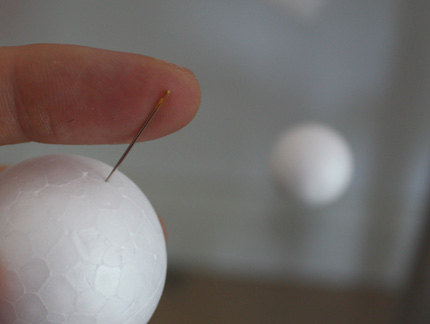 I wanted to join them together to create a bubbly object. After trying different glue I realised that they just don’t work or melt the balls or take too long to set so I decided to use needles as a way to connect them by pushing half a needle into one ball and the other half in another.