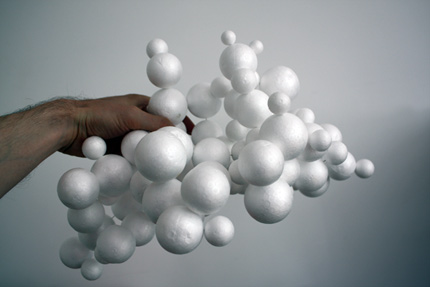 I started joining balls but realised it wasn’t easy as in order to create strength in the ball structure each ball needed to connect to two or three others. The needles were difficult to push into more than one other ball at the same time. Eventually I got somewhere and created a mass of bubbly balls. Could develop in many directions, I like the look of it but needs a stronger method of connecting….