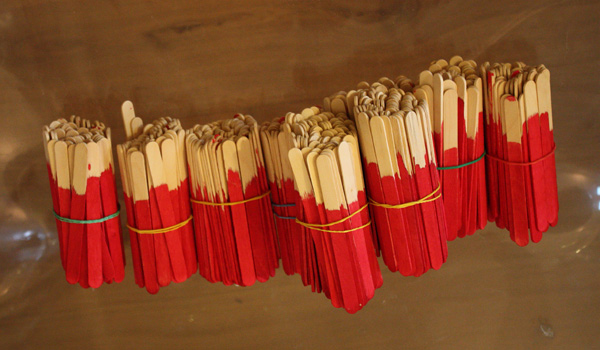 I thought adding colour to the sticks would be good and I decided to dip the sticks in ink up to the same line as used ice lollys are stained.