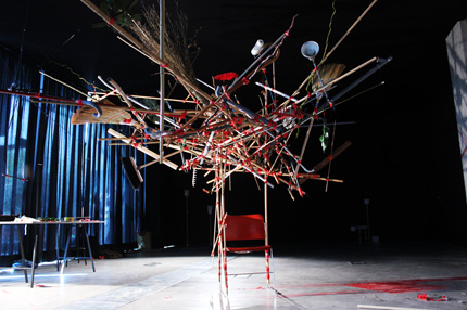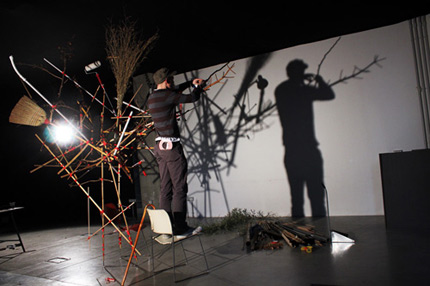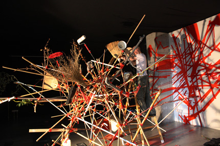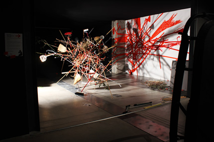 At the end the stick structure was moved to a new room leaving the shadow drawing as a permanent piece.