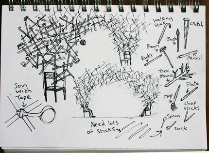 The chair and some sticks were waiting for me when I arrived with my tape.