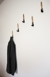 One day I was walking through an art shop and looked at the brushes. They seemed pleasant objects so I decided to come up with something using one of them. I remembered how I used to forget to wash paint brushes after using them and then would find them hard and unusable the next day. After quite a few trials and mistakes I managed to make something useful, a coat hook. Handily there is a hole at the top of the handle for the screw.