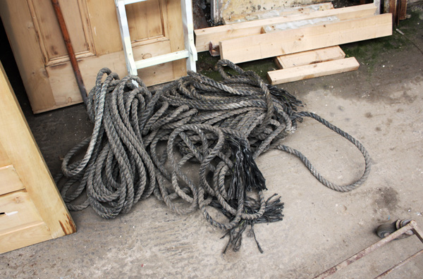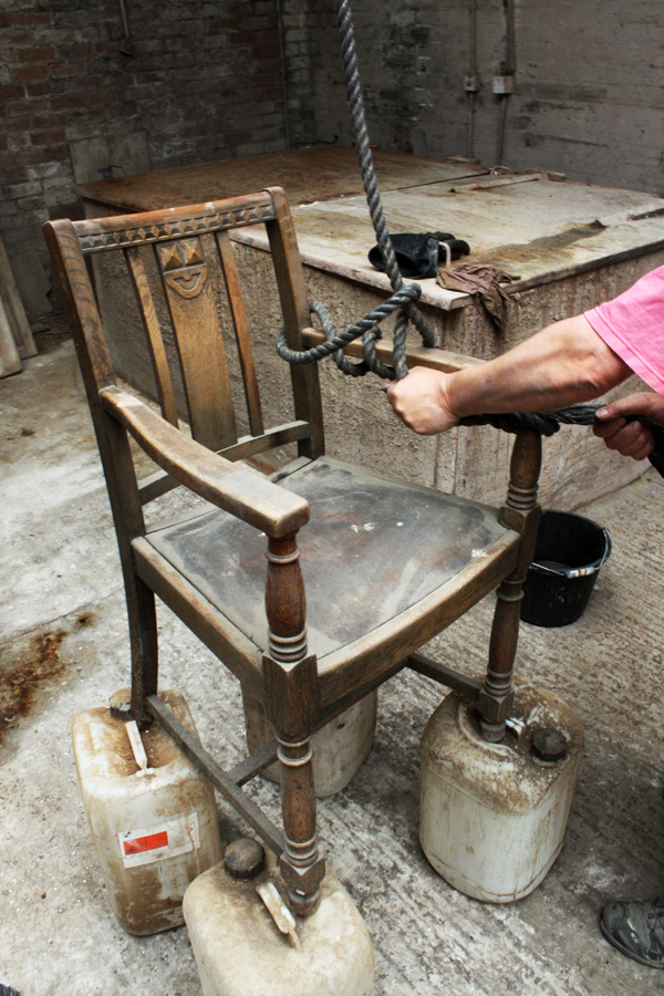 I visited a factory and looked around for something to make. I found some rope and a wooden armchair and decided to make a swing as there was a high beam on the ceiling.